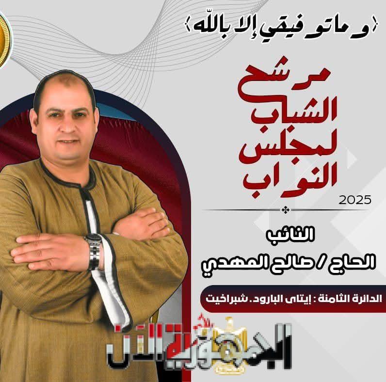 تستعد مصر لخوض أحد أهم الاستحقاقات البرلمانية في تاريخها الحديث، انتخابات مجلس النواب 2025، التي ينتظرها المواطنون على أحر من الجمر. وفي قلب هذه اللحظة السياسية المفصلية، يبرز اسم النائب الحاج صالح المهدي كرمز بارز في الدائرة الثامنة، والتي تضم مركز إيتاي البارود ومركز شبراخيت، ممثلًا لطموحات الشباب، ومدافعًا عن قضايا الناس بشعار قوي ومعبّر:
